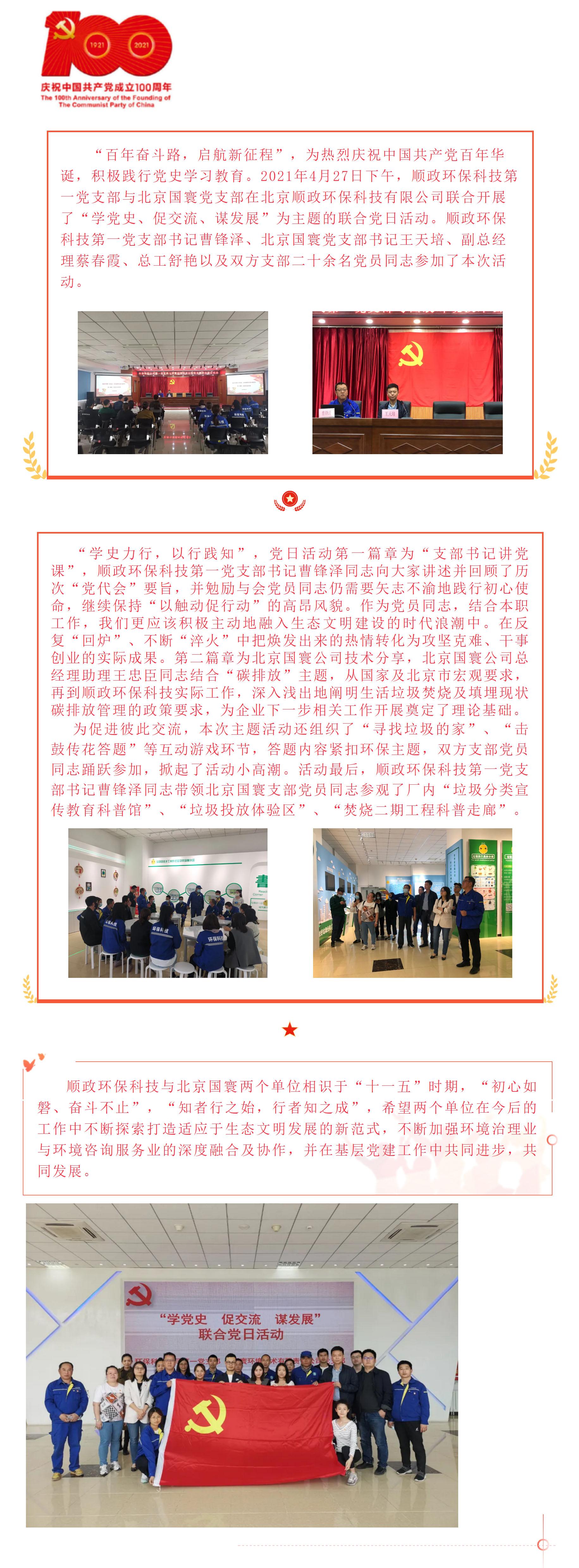 “學(xué)黨史、促交流、謀發(fā)展” 順政環(huán)保科技第一黨支部與北京國寰黨支部開展建黨100周年聯(lián)合主題黨日活動