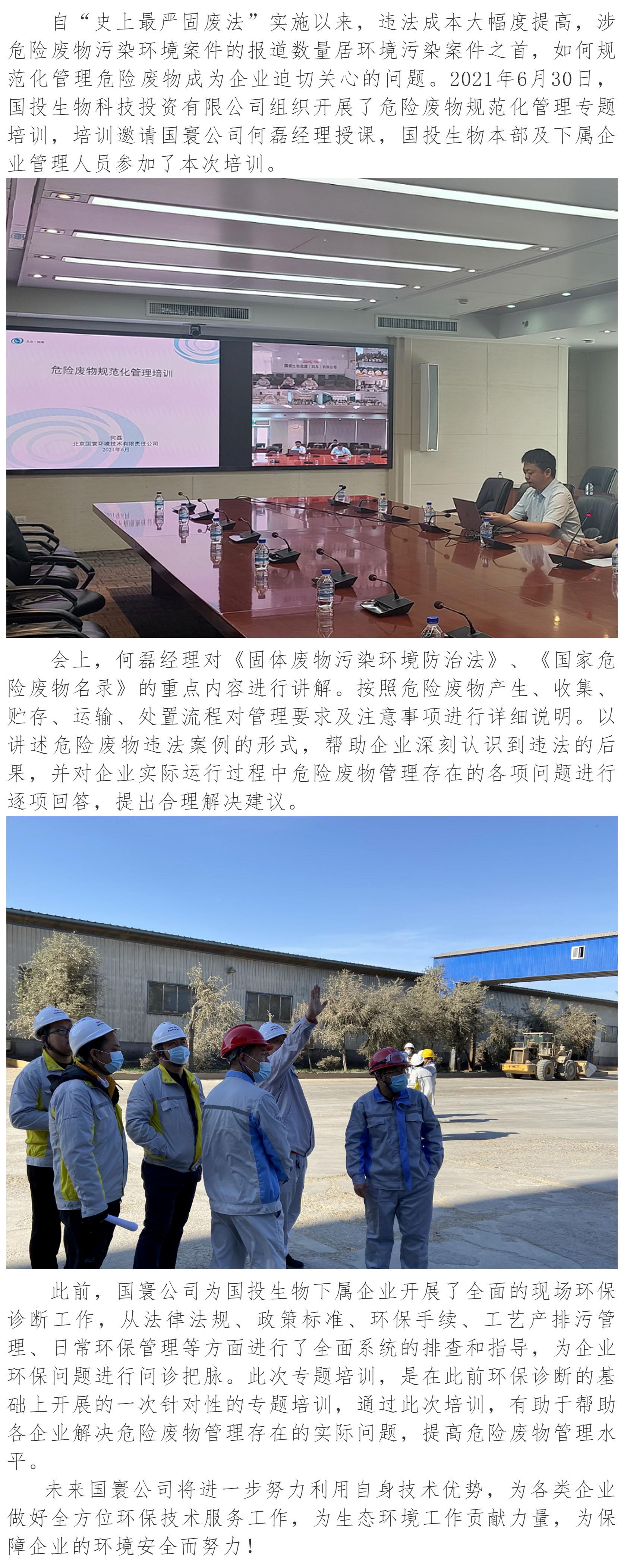 國寰公司受邀為國投生物進行危險廢物規(guī)范化管理專題培訓