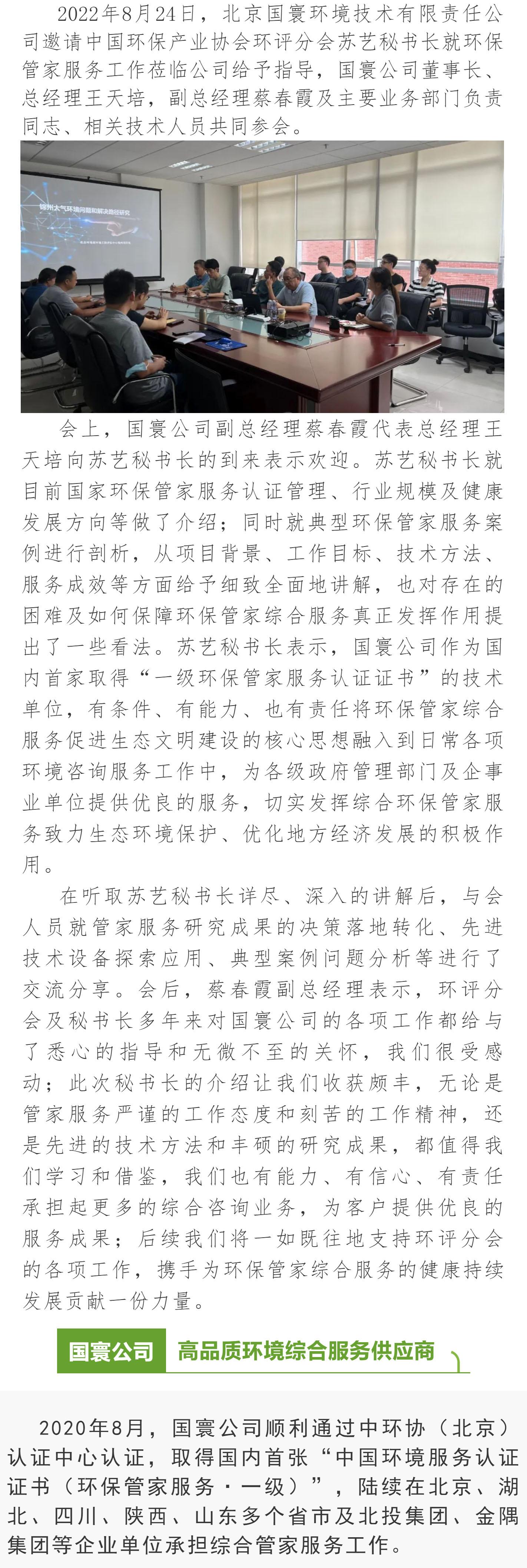 中國環境保護產業協會環評分會蘇藝秘書長蒞臨國寰公司指導環保管家服務工作