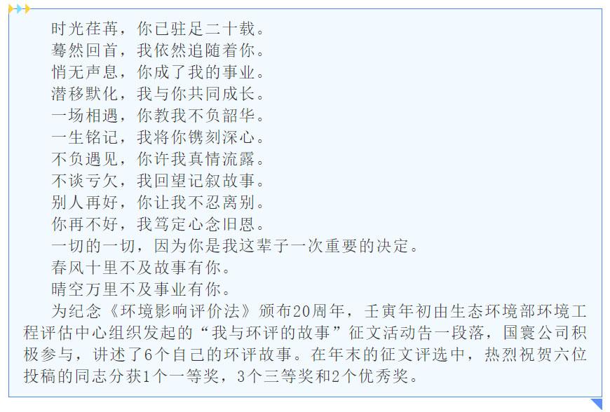 春風十里,感恩環(huán)評有你—記國寰公司參加“我與環(huán)評的故事”征文活動獲獎
