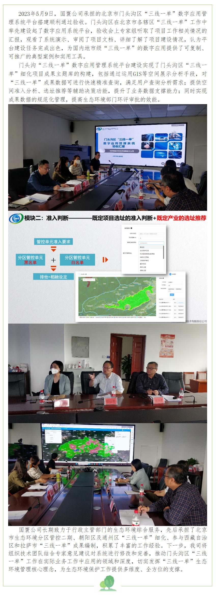 門頭溝區“三線一單”數字應用管理系統平臺順利通過驗收