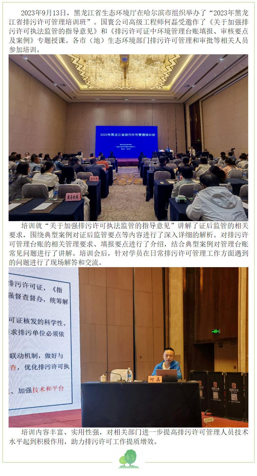 國寰公司受邀為2023年黑龍江省排污許可管理培訓班授課