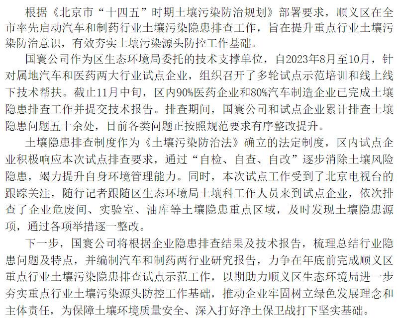 國寰公司助推順義區重點行業土壤隱患排查工作迭出新績