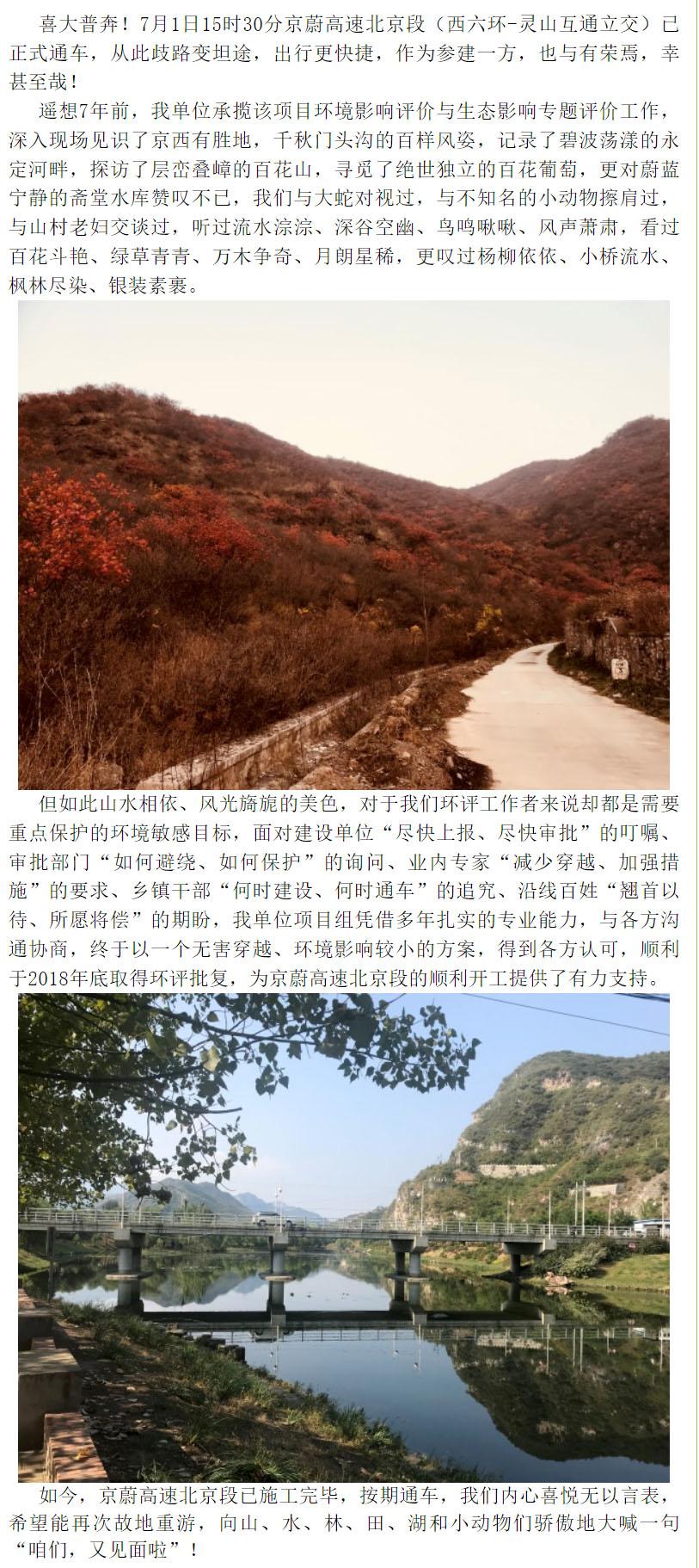 廿年籌劃終結果,一朝天塹變坦途——我公司環(huán)評服務京蔚高速北京段實現(xiàn)通車