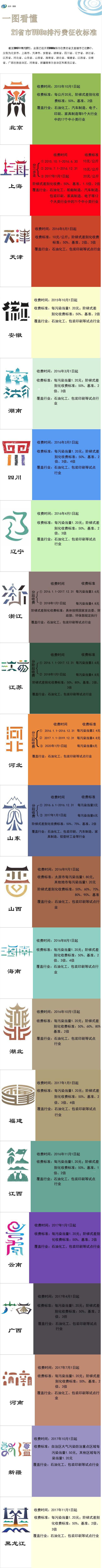 一圖看懂21省市VOCs排放費征收標準